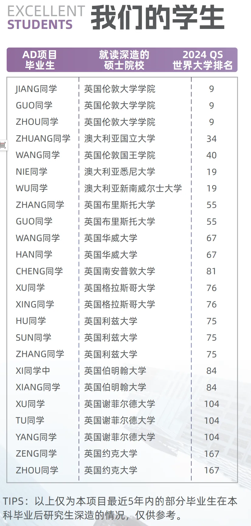 该项目是学院的创院项目,2025年迎来第二十三届招生。自2003年以来,学院该项目共累计培养超6000名毕业生顺利前往英国、澳大利亚、新加坡等国续读本科,教育成果丰硕。超80%的学生在本科毕业后可申请到英国前20以及全球前200位的院校继续攻读硕士。