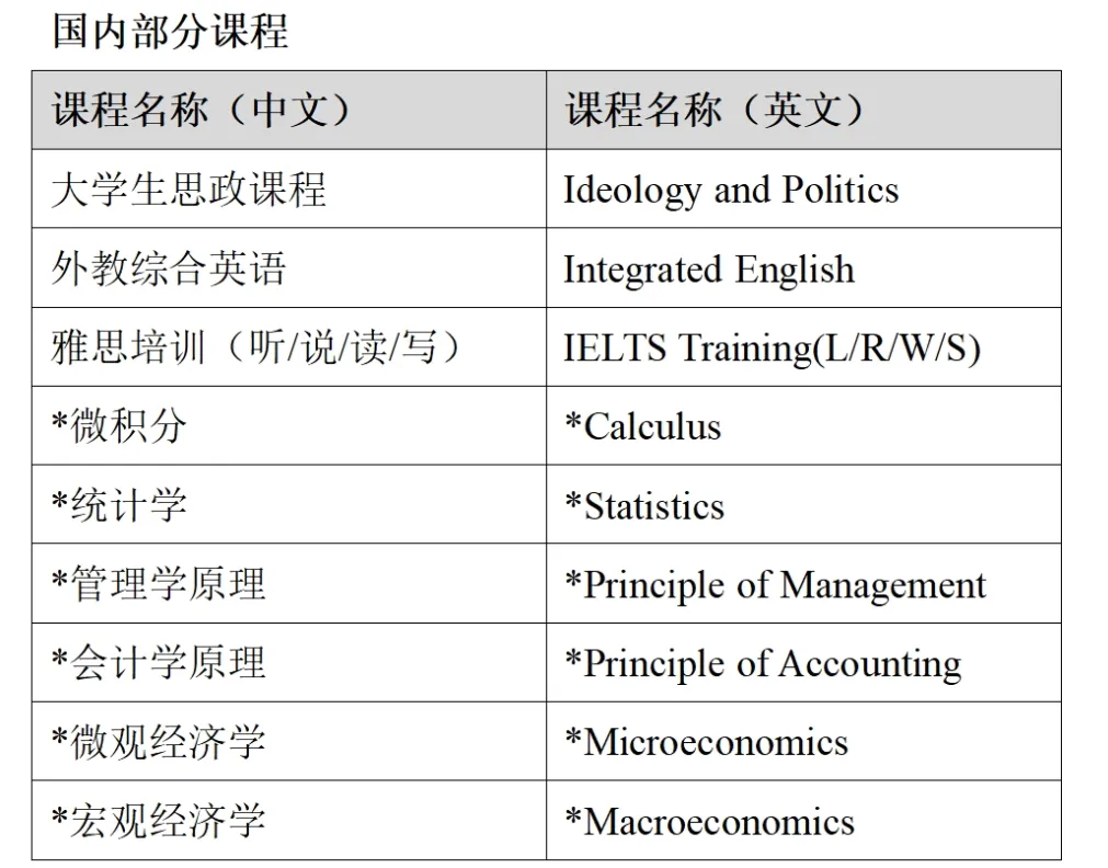 国内阶段2年:学习语言强化课程、部分学分豁免专业课程、思政课程。顺利完成国内学业后,办理签证自费出国留学。