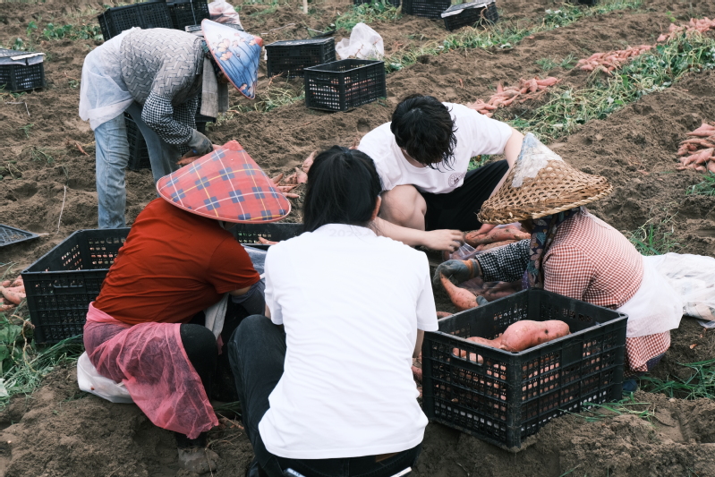 漳州独特的沙田因含碱含盐、日照充足、昼夜温差大,成为番薯生长的天然沃土,种出来的番薯粉糯细腻、香甜可口。为探寻这份自然馈赠背后的耕耘密码,师生们走进获评2022年粮食产能区示范片的湖塘村朝晖农场,亲手参与甘薯采收作业,开展劳动实践。师生们卷起裤腿、俯身田间,学习“三步采收法”:先松土、再提蔓、后轻挖。历经一小时的采收,同学们双手沾满泥土,收获满满,不仅对“足蒸暑土气,背灼炎天光”的田间劳作有了更真切的体悟,更深刻感受到“一粥一饭,当思来处不易;半丝半缕,恒念物力维艰”。