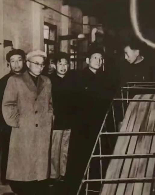 图为陈云视察芜湖联盟化肥厂的生产车间
