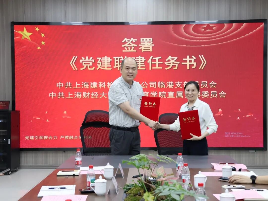 在党建经验分享环节,学院直属党支部与上海建科检验有限公司临港党支部分别介绍了各自在党建工作中的创新做法和成功经验,随后,双方签署了《党建联建任务书》,明确了在党建联建、人才培养、学习交流等方面的具体任务和目标。
