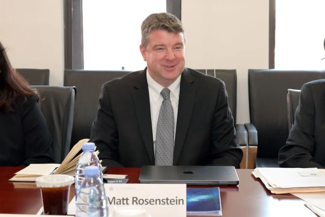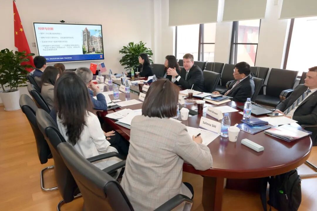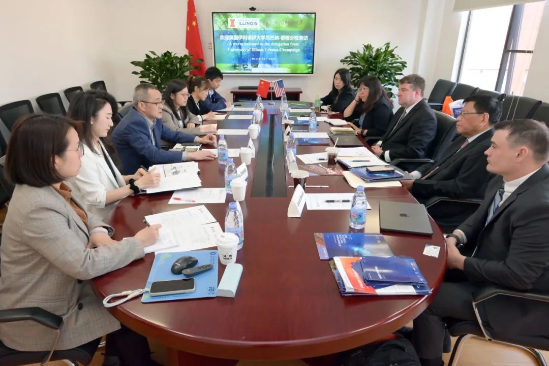 三月的校园春意正浓,繁花似锦。3月24日,上海财经大学国际教育学院迎来了远道而来的嘉宾。美国伊利诺伊大学厄巴纳-香槟分校(Univercity of Illinois Urbana-Champaign,简称UIUC)全球教育与培训部主任马特·罗森斯坦博士(Dr. Matt Rosenstein)及其同事一行共五位老师到访我院,沈晖院长携相关部门的同事一同参加了会谈。