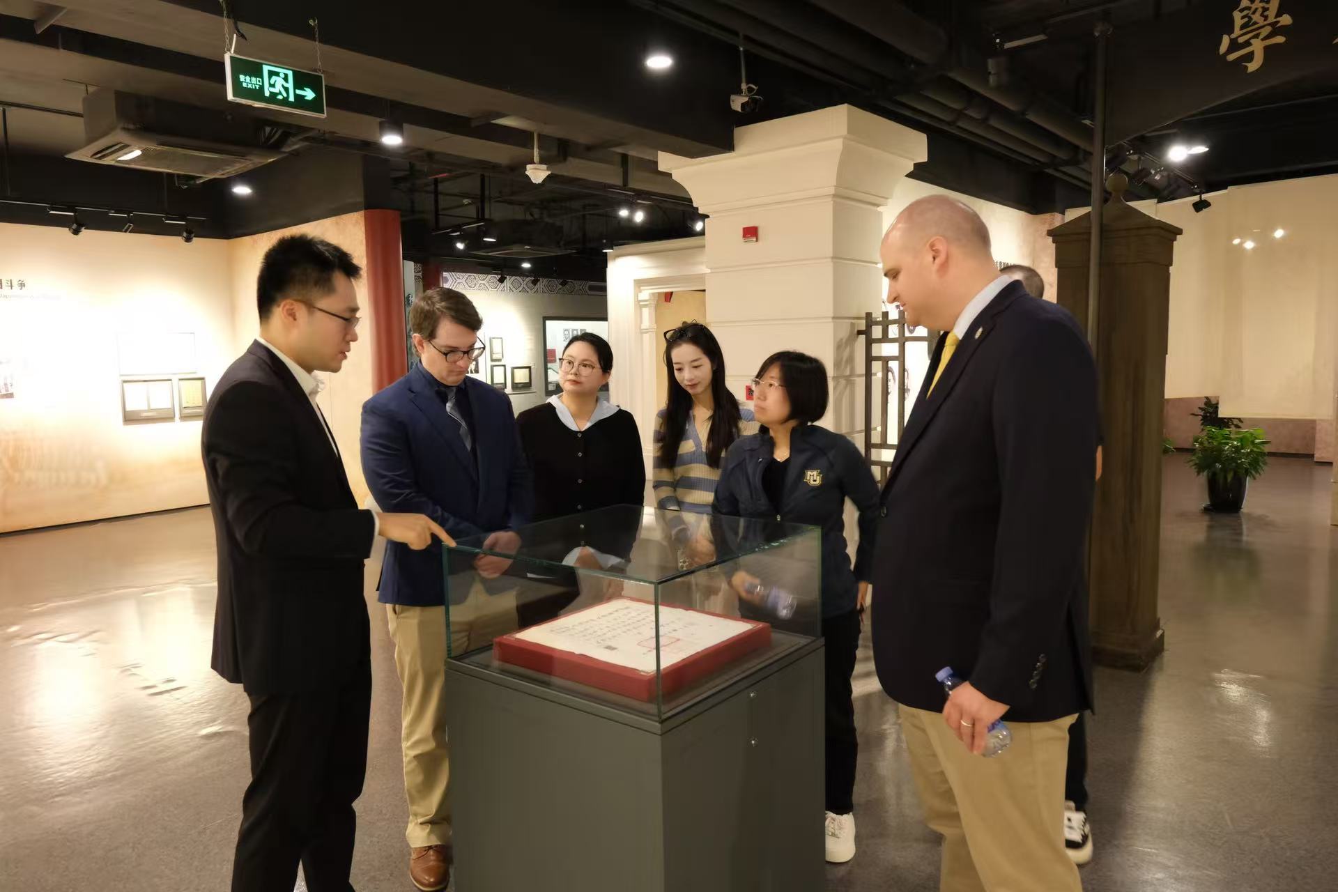 会谈后,Brain Troyer副校长一行参观了上海财经大学校史馆和商学博物馆,深入了解我校百年商科教育的发展历程与文化底蕴。一枚枚货币实物、一本本泛黄教材、一段段历史影像,不仅展现了中国财经教育的演进轨迹,也彰显了我校作为财经高等教育开拓者所肩负的时代使命。参观过程中,来宾们频频驻足,认真聆听讲解,不时交流讨论,对我校深厚的历史底蕴与鲜明的办学特色表示高度赞赏。