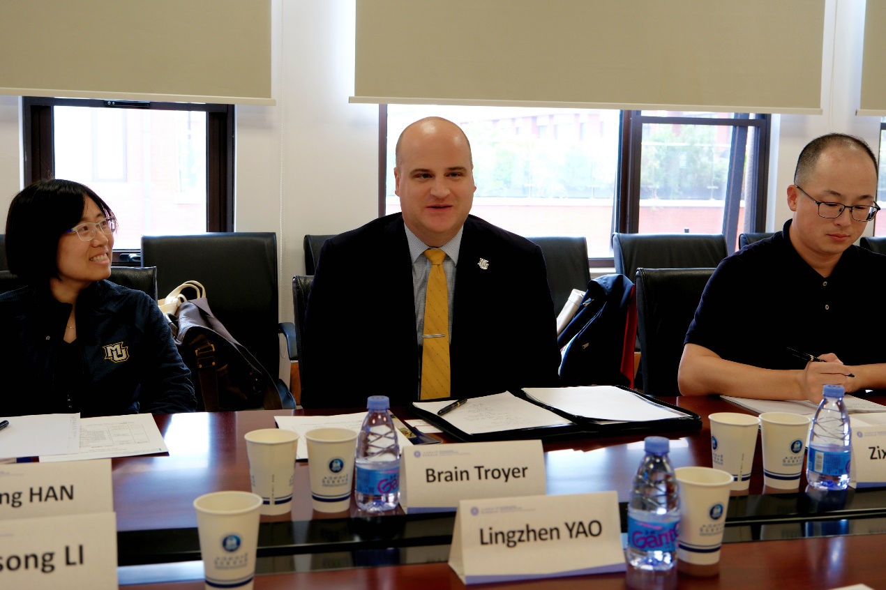 10月30日上午,美国马凯特大学(Marquette University)副校长Brain Troyer率代表团一行到访上海财经大学。我校副校长姚玲珍、国际处副处长王磊、国际教育学院副院长李劲松在国际教育学院第二会议室共同接待来宾,双方开展深入交流,探讨未来合作方向,推动两校国际教育合作迈上新台阶。