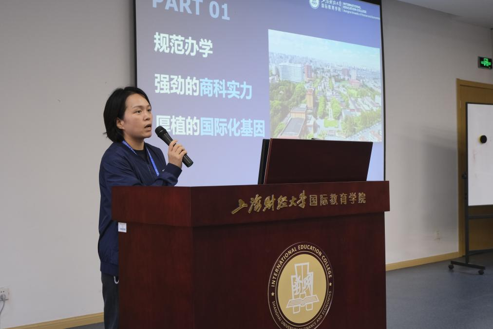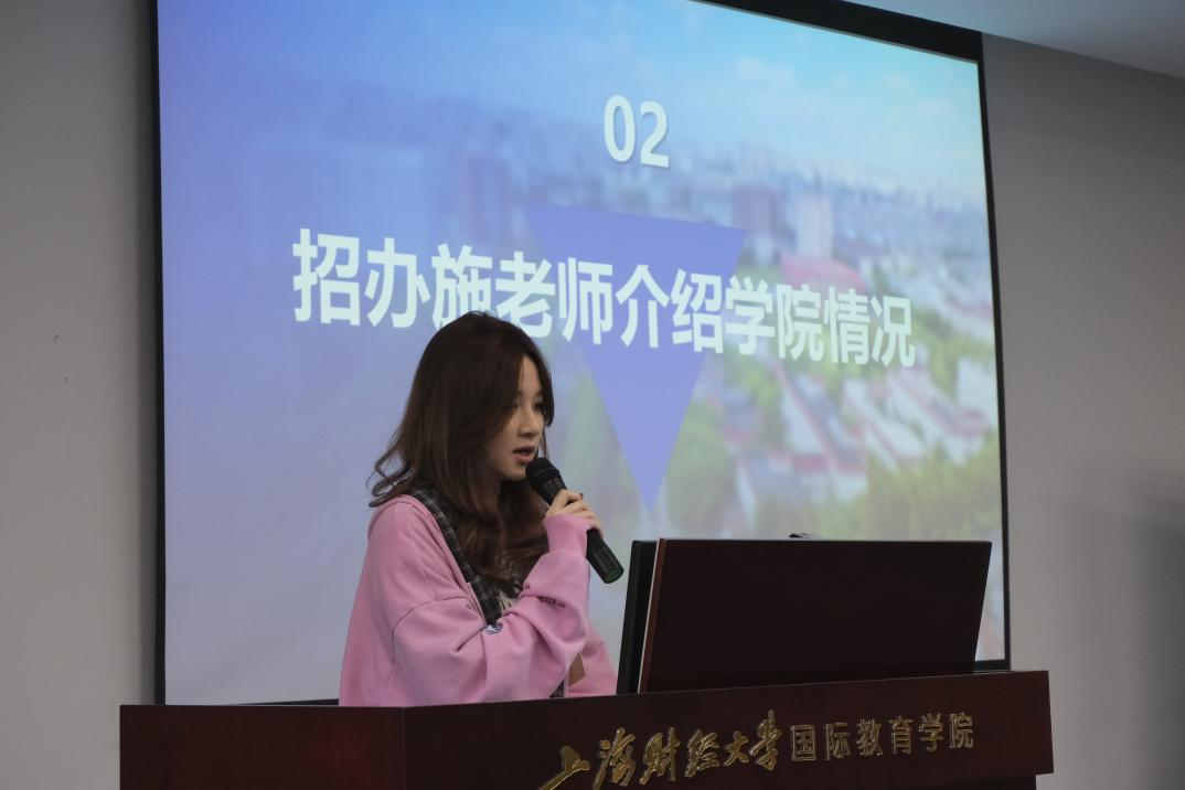 最后,海滨中学校友、学院项目在读生高彧同学结合自身学习经历,分享在上财国教的校园生活与学习体会。她以切身经验向参营学生呈现了真实的大学学习场景,也为大家未来的升学规划提供了具有参考价值的建议。