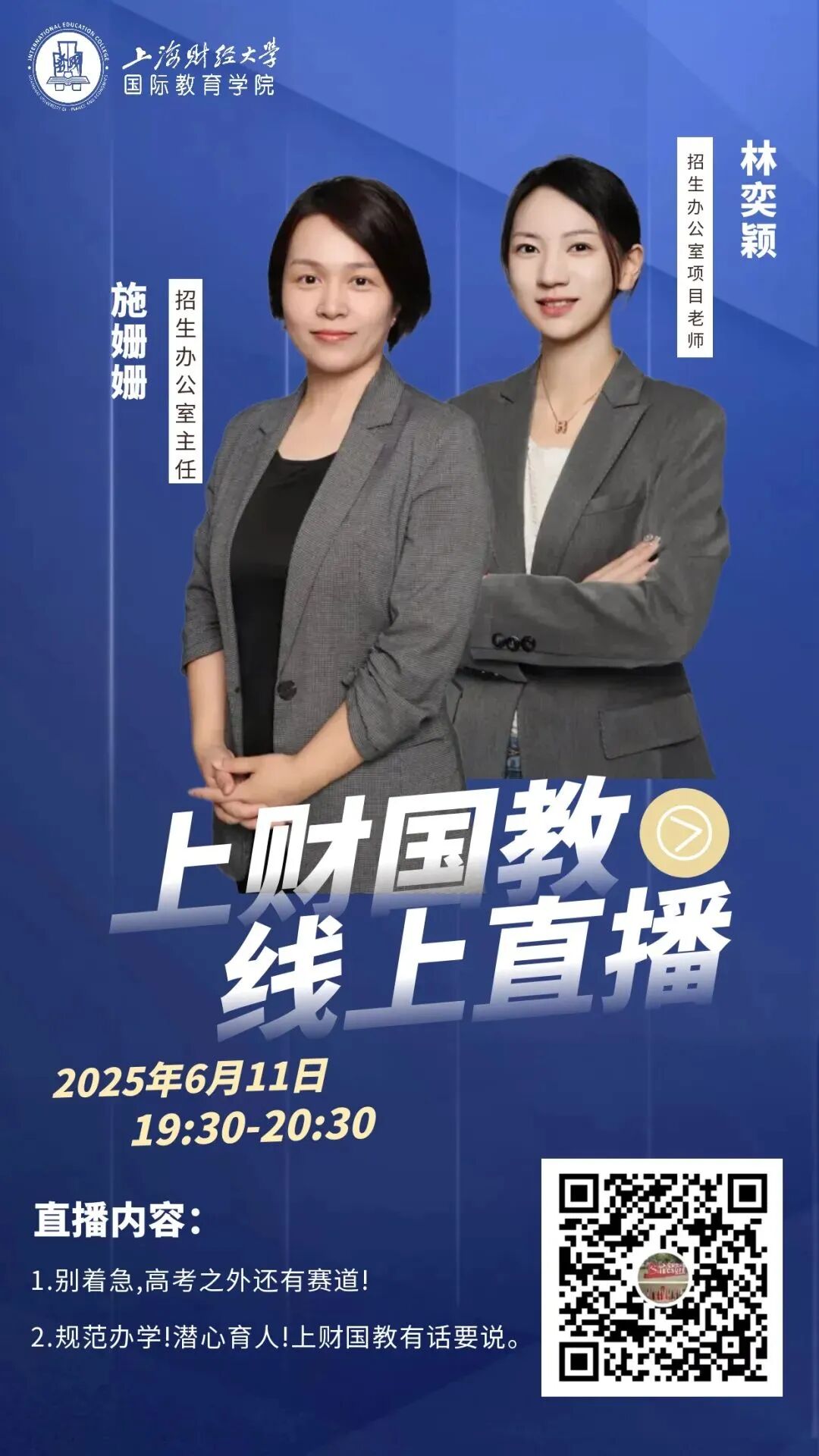 围绕学生与家长在升学规划、项目选择与学习适应中的实际需求,学院持续打造主题直播与系列专场,集中解读政策、梳理路径、回应关切。通过招生老师、项目负责人、一线教师与优秀校友等多方参与,直播为意向学生和家庭提供更具权威性与参考价值的信息支持。直播不仅成为获取关键信息的重要渠道,也逐步形成稳定、持续的沟通机制,帮助升学决策建立在充分理解与理性判断之上。