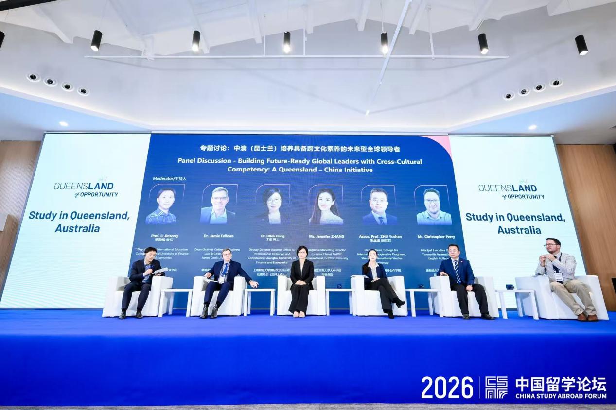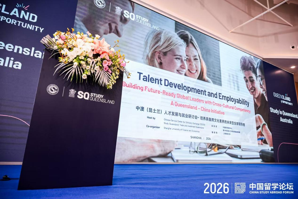 作为2026中国留学论坛及教育展相关配套活动之一,本次研讨会以“培养具备跨文化素养的未来型全球领导者”为主题,汇聚中国留学服务中心、澳大利亚昆士兰州政府、中澳高校及教育机构代表,围绕人才发展、就业能力提升、跨文化能力培育和国际教育合作等议题展开交流,共同探寻高水平国际化人才培养新路径。